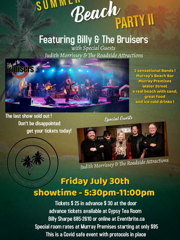 Judith Morrissey & The Roadside Attractions are a talented team of creative musicians. Judith will capture you with her fearless powerhouse vocals and stage presence as she works together with her solid and well-seasoned band members. This group will transport you in a musical time machine to your favourite classic rock and pop hits… and some original songs too! Known for their musical versatility and breaking boundaries with their unique versions of the songs – you will surely be entertained!